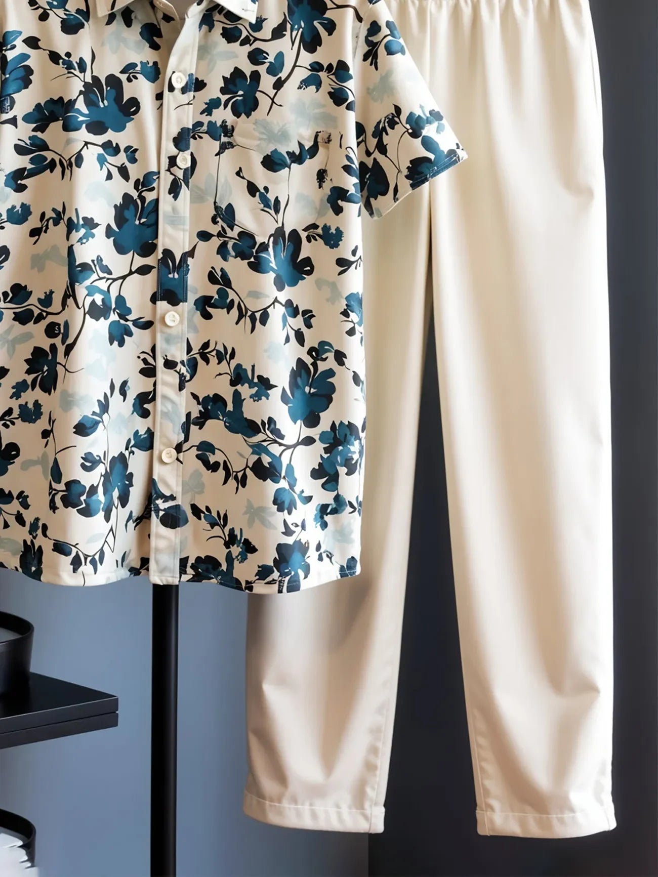 Channel breezy elegance with this Korean-style floral co-ord set, designed to keep you effortlessly stylish through warm days. The shirt features a striking teal and black floral print over a soft cream base, crafted from breathable cotton for all-day freshness. It’s paired with clean cream trousers, tailored in a relaxed fit for easy movement and a polished finish.