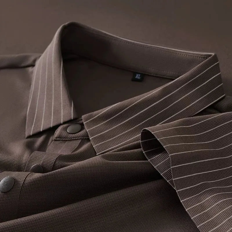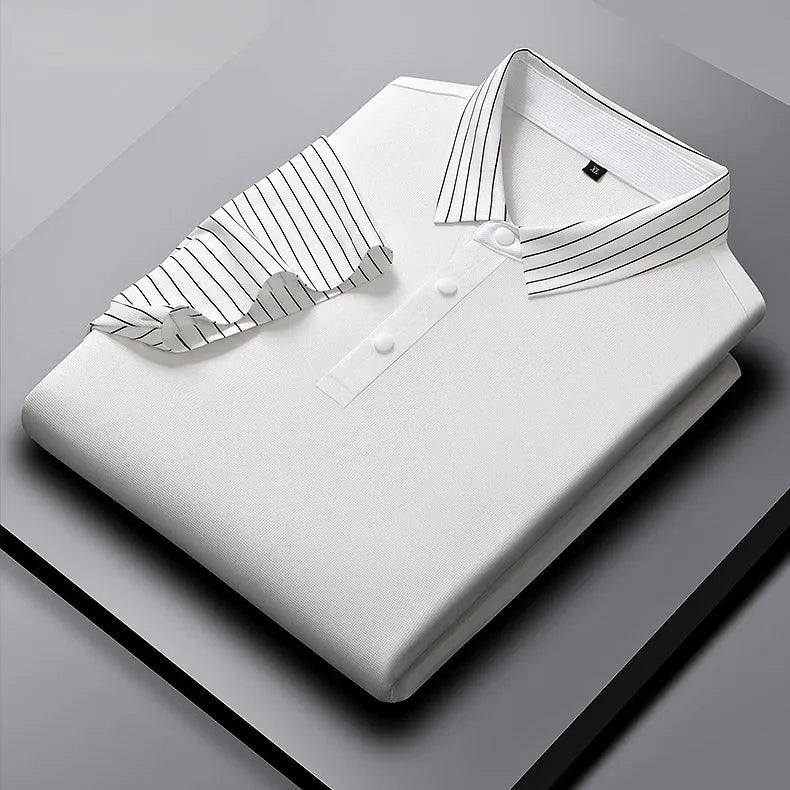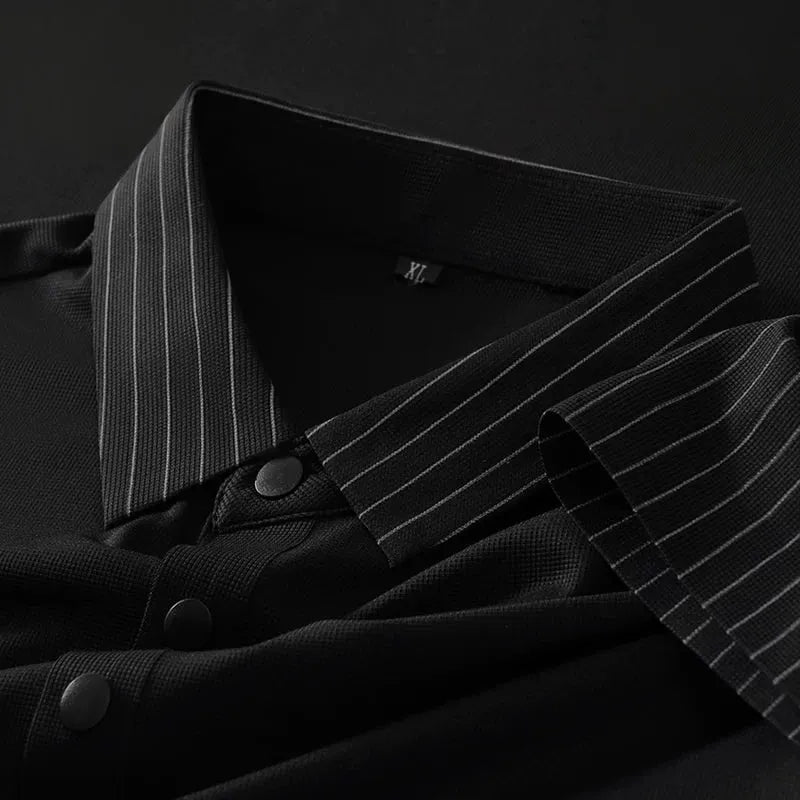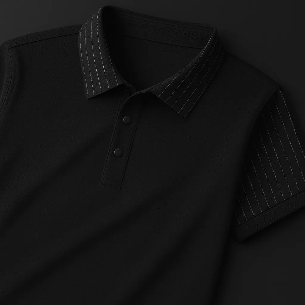 Step into effortless sophistication with our Elegant Polo T-Shirt, designed for the modern man who appreciates subtle style and refined details. Crafted from high-quality breathable fabric, this polo features a sleek vertical striped collar and sleeve cuffs that add a sharp contrast to its minimal look.