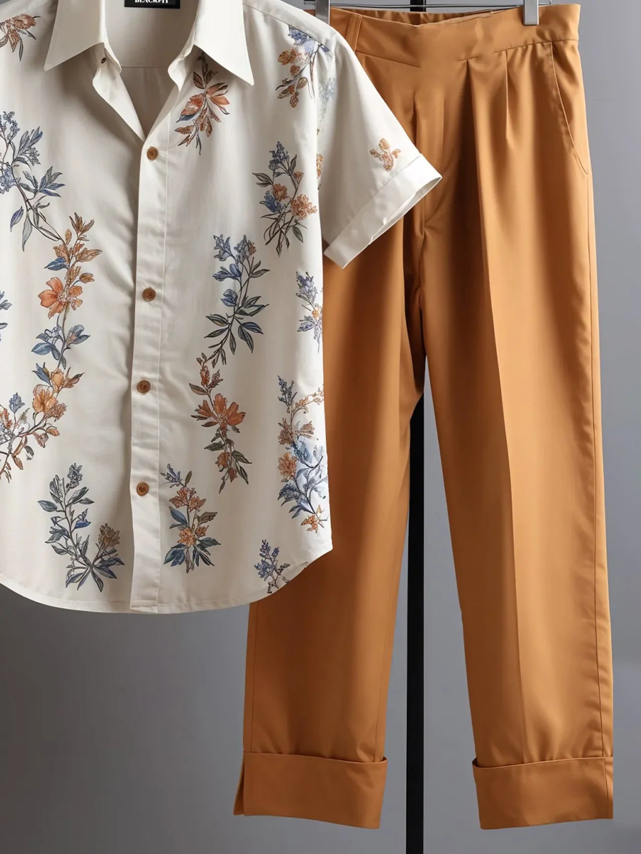 Step into effortless elegance with this Korean-style co-ord set designed for the modern man who appreciates detail and comfort. The cream shirt features a delicate floral print in soft shades of rust, blue, and beige — offering a fresh, breezy aesthetic perfect for summer. It's paired with tailored rust brown trousers, crafted for a smart silhouette that doesn’t compromise on ease.