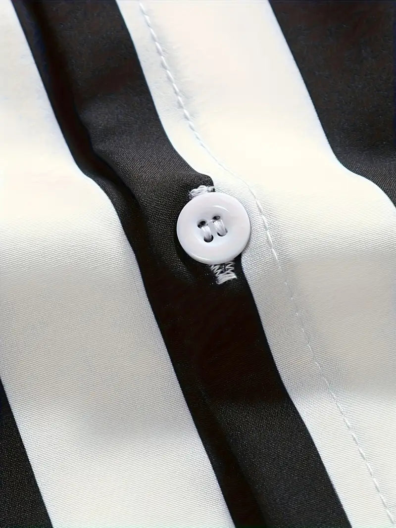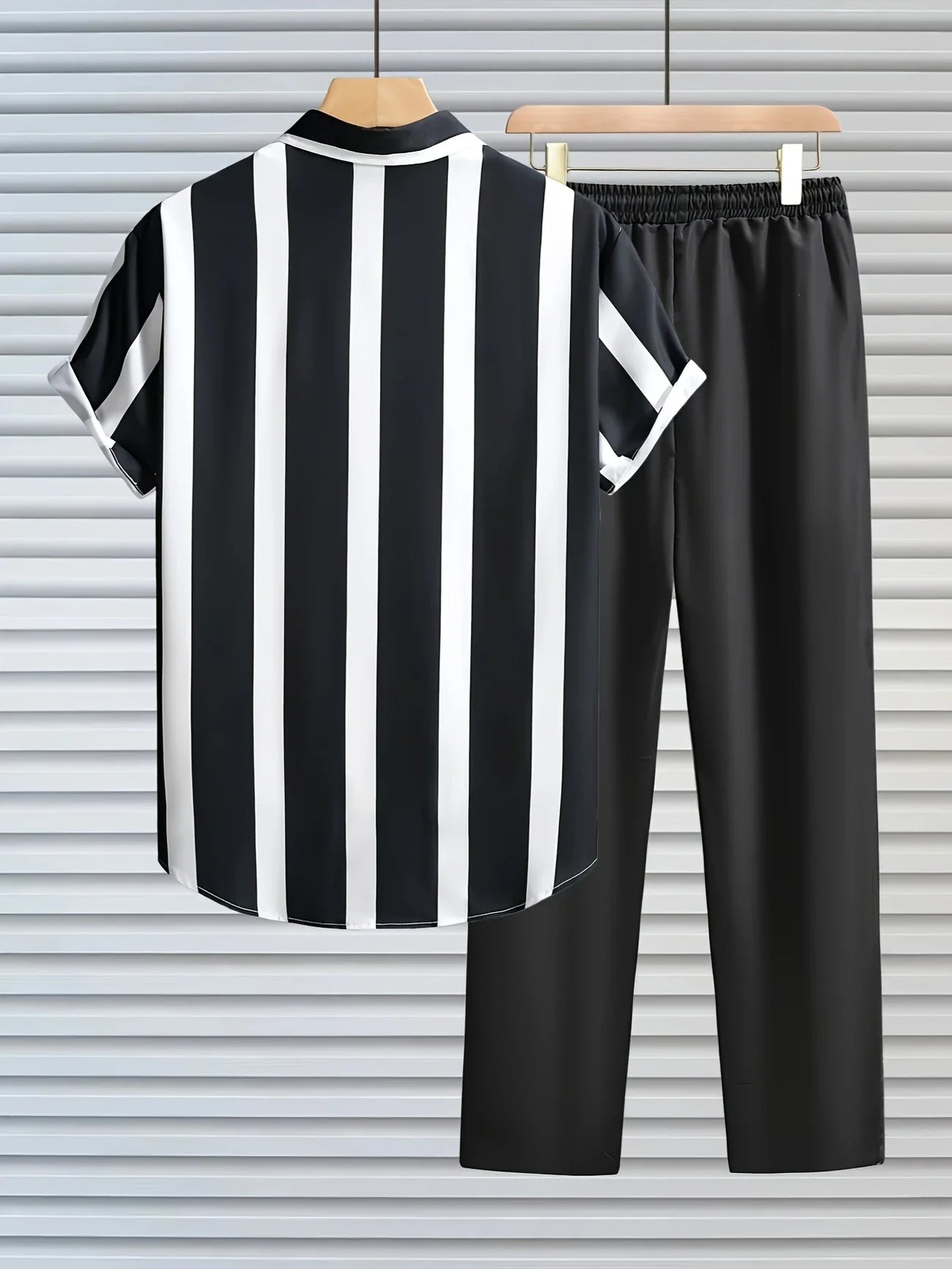 Make a statement with this Korean-inspired co-ord set featuring a sharp monochrome striped shirt paired with sleek black trousers. Crafted from breathable 100% cotton, the vertical stripes not only enhance your silhouette but also add a touch of bold minimalism to your wardrobe. The soft cotton trousers offer all-day comfort with a relaxed yet structured fit – perfect for casual outings, travel days, or streetwear edits.