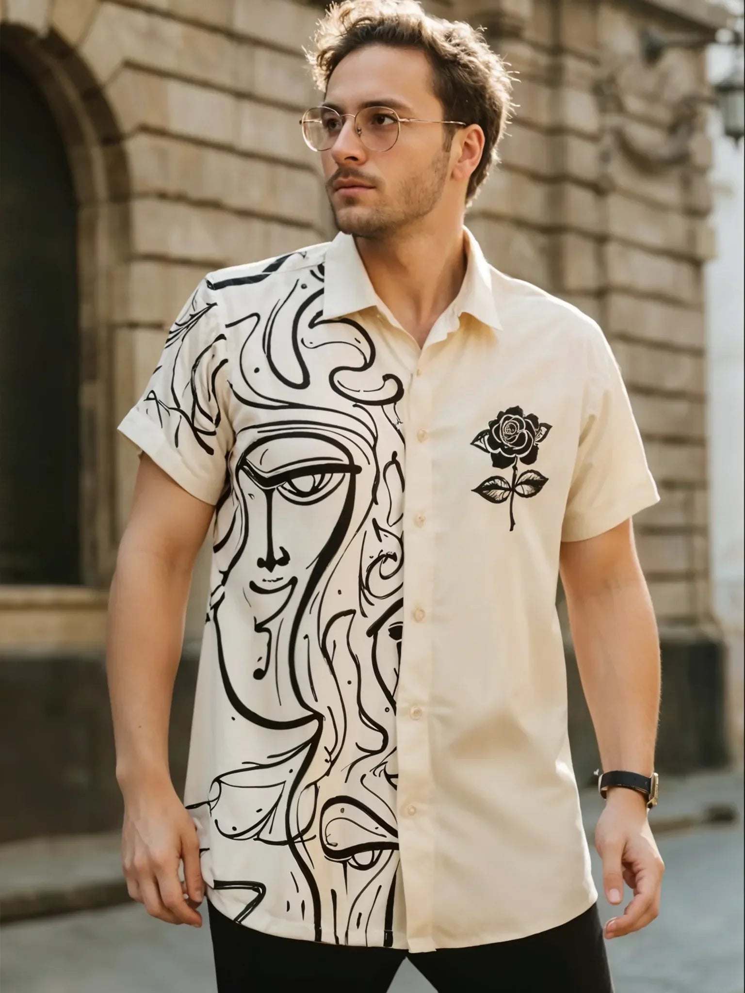 Elevate your casual style with this men's half-sleeve shirt, designed from regular fabric for all-day comfort. The bold printed design adds a trendy touch, making it perfect for relaxed, fashionable looks. Ideal for both everyday wear and casual outings.