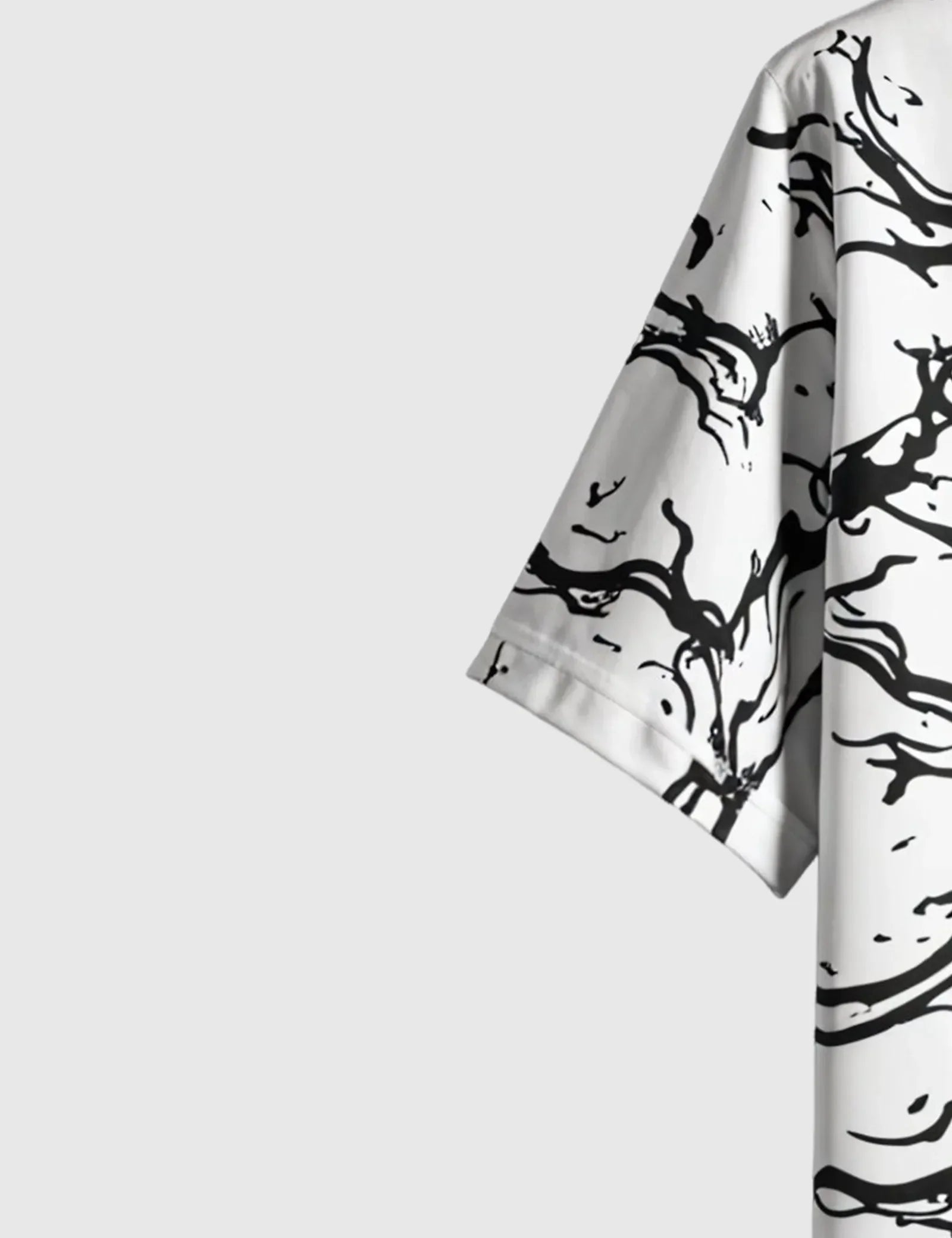 Monochrome Marble Flow Shirt – Black Abstract Swirl Print on White