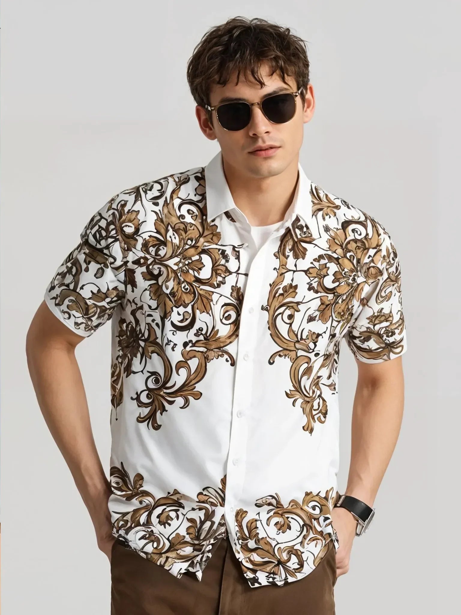 Elevate your casual style with this men's half-sleeve shirt, designed from regular fabric for all-day comfort. The bold printed design adds a trendy touch, making it perfect for relaxed, fashionable looks. Ideal for both everyday wear and casual outings.
